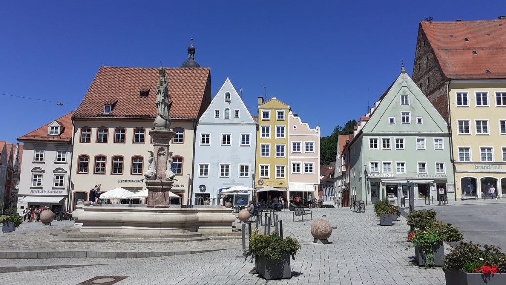 Machen wir einen großen Sprung in der Geschichte: obwohl im Nationalsozialismus Landsberg eine besondere Bedeutung hatte – Adolf Hitler verbüßte hier seine Festungshaft und dort schrieb sein Buch „Mein Kampf“ – und trotz einiger militärischer Einrichtungen in oder in unmittelbarer Nähe zur Stadt, blieb sie als eine der wenigen Kreisstädte Deutschlands von alliierten Luftangriffen verschont, weshalb sich ihre Altstadt in unvergleichlicher Art und Weise erhalten hat. Auf die werfen wir morgen einen genaueren Blick…