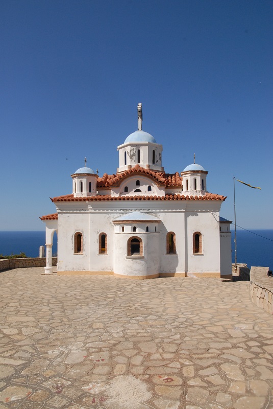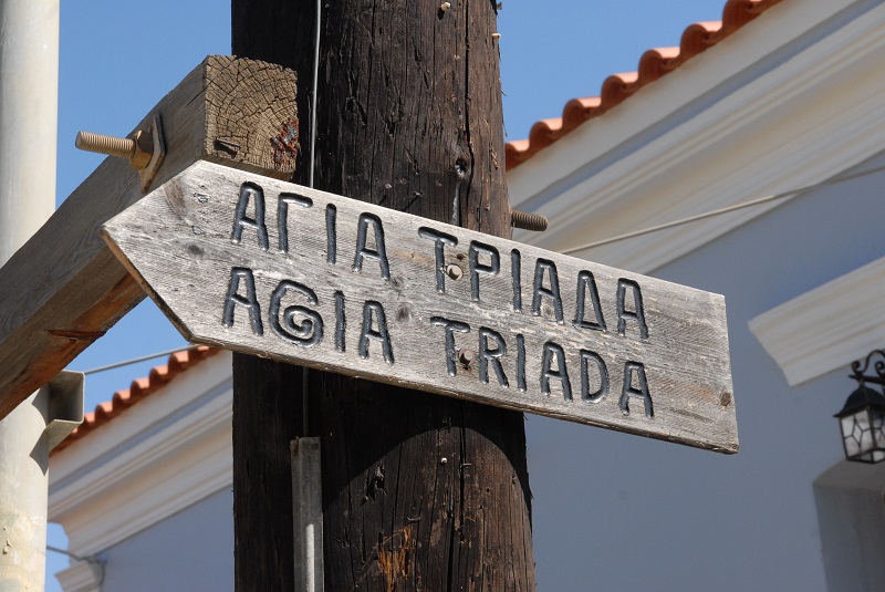 Glaubt man den Chronisten, dann war das Dorf früher vom Meer aus gar nicht zu sehen. Zu groß war die Angst vor Seeräubern und anderen Angreifern. So versteckte man sich oben in den Bergen. Auch zeigt nur ein kleiner Wegweiser den Weg hinauf ins „alte Dorf“. Erst, als man sich sicherer fühlte, errichtete man an exponierten Stellen Kirchen. Davon gibt es gleich mehrere auf dem Hügel der Triada, dem Hügel der Dreifaltigkeit.