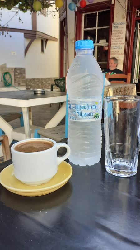 Ich geize nicht mit Trinkgeld. Da lächelt der Wirt mich an und entblößt eine Reihe brauner und fehlender Zähne. Jetzt ist er die Freundlichkeit in Person. Es macht mir nichts aus. Ich habe ja auch mal einen schlechten Tag. Und schließlich habe ich ja bekommen, was ich wollte. Hier, in der alten Taverne Filirakia in Ano Vathi, die hier schon seit 1880 steht. Ein ganz besonderer Kaffee-Moment.