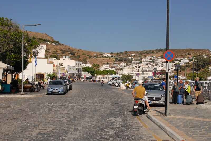 Erst 1669 wurde Patmos türkisch und blieb es, bis sich 1912 die Italiener die Insel aneigneten. Aus der italienischen Zeit stammen der Hafen und auch die Hafenverwaltung mit Polizeistation, Zoll und Postamt. Die weißen Gebäude fallen einem sofort ins Auge, sobald man das Schiff verlässt. Doch erst muss man ankommen. Langsam schiebt sich das Schiff, die Dodekanisos Pride, an der Landzunge entlang – Untiefen wurden schon manchem Seefahrer hier zum Verhängnis – bis die den Blick auf den Hafen freigibt, der weiß zu leuchtend scheint auf der braunen Insel. Ehrfürchtig gibt jedes sich nähernde Schiff zwei Mal Signal, bevor es in den Hafen einläuft. Nur hier tun sie das, zu Ehren der heiligen Insel, wie sie mit Parlamentsbeschluss seit 1983 offiziell heißt.