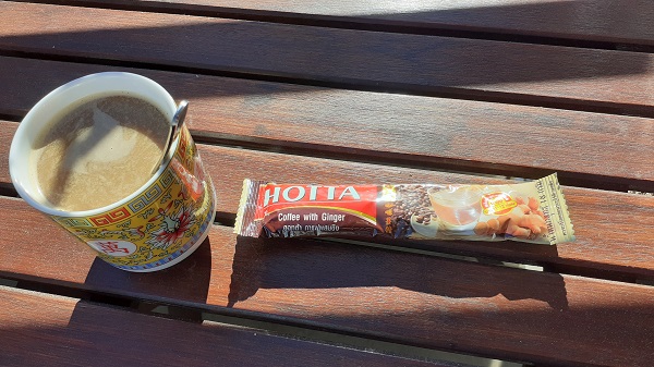 Ein exotisches Kaffee-Erlebnis aus dem Instant-Päckchen? Wer aufmerksam in Asia-Läden stöbert, der kann auf ihm bisher unbekannte Kaffee-Spezialitäten. So wie ich. In diesem Fall mit dem Coffee with Ginger von Hotta. Der Coffee with Ginger von Hotta stellt in vielerlei Hinsicht eine Besonderheit dar. Zum einen ist es natürlich der Geschmack nach Ingwer, zum anderen ist es die erfreulich kurze Zutatenliste: neben Kaffeeweißer und Instankaffee nämlich nur Ingwer und Zucker, ohne Zusatz- und Konservierungsstoffe. Ob er auch eine medizinische Wirkung hat, kann ich nicht belegen. Aber geschmeckt hat er mir!