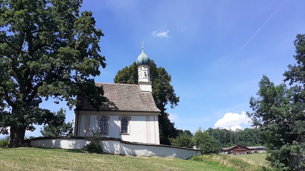 Die Kapelle ist ab dem 14. Jahrhundert nachweisbar, im Kern spätgotisch und weist heute eine barocke Fassung nach größeren Umbauten im 15. und 17. Jahrhundert auf. Man erzählt sich, dass ein iro-schottischer Wandermönch hier im 3. Jahrhundert eine Klause auf einem Keltenheiligtum errichtet haben soll und der Altarstein und drei der Stufen aus dieser Zeit stammen sollen. Belegt allerdings ist, dass Wandermönche um diese Zeit herum begannen Bayern zu christianisieren.