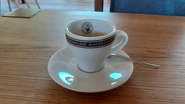 Diesmal nahm ich mir nur die Zeit für einen Espresso, schließlich warteten im Ort noch Kaffee und Kuchen auf mich, denn die hatte ich am Hinweg schon in Augenschein genommen. Für den Moment genieße ich aber erst einmal einen leckeren Espresso vom besten Röster im Blauen Land.