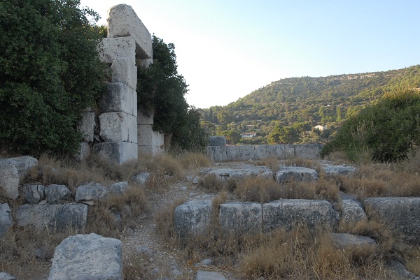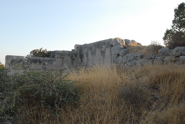 Ein Teil dieser Stadtmauer wird auf Google Maps fälschlich mit „Festung des Polykrates“ bezeichnet. Allerdings ist dieser Teil auch schwer zu erreichen. Ich wandte mich deshalb einem anderen, gut erhaltenen Teilstück zu, das besser zu erreichen ist. Zumindest einfacher zu erreichen sein soll. Zumindest steht in Pythagorio an der Hauptstraße ein Wegweiser, der das verheißt. Dem folge ich – und bin dann doch wieder auf mich allein gestellt, da es keine weiterführende Wegweisung gibt.