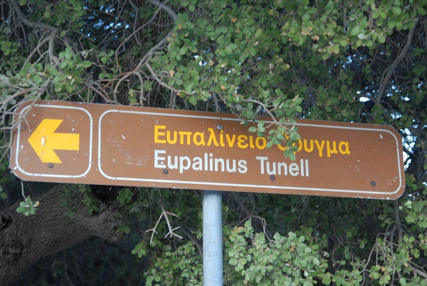 Auf dem Rückweg von den Stadtmauern sehe ich mir noch ein weiteres Baudenkmal an: den Eupalinos-Tunnel, zumindest den frei einsehbaren antiken Eingang. Der Tunnel ist nach seinem Architekten Eupalinos von Megara benannt, dessen Name vom griechischen Historiker Herodot der Nachwelt überliefert wurde. Viel mehr ist über den genialen Baumeister und Architekten nicht bekannt. Der Tunnel ist der nämlich erst zweite bekannte Tunnel in der Geschichte, der im Gegenortvortrieb gebaut wurde, und der erste, bei dem dies nach einem sorgfältig ausgearbeiteten Plan geschah. Mit 1036 Metern Länge war der Eupalinos-Tunnel zudem der längste Tunnel seiner Zeit.