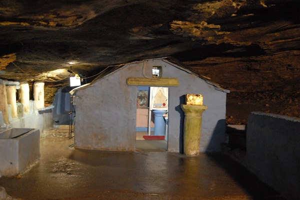 Am Eingang zur Grotte steht ein Altar. Dann geht es über ein – rutschige! – Treppe nach unten in den Bereich der Grotte, der eher breit und niedrig ist, als lang. Hier hängen an einer weiß gekalkten Wand zahlreiche Ikonen von verschiedenen Heiligen. Rechts geht es über einen Tunnel weiter in die Höhle hinein. Hier ist die Marien-Kapelle mit der Ikone und der Quelle. Es soll noch weitere Tunnel geben, aber die sind nicht für Besucher geeignet. Vielleicht haust ja hier noch die Sybille Phemonoe…