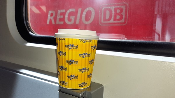 Für diese 9-Euro-Ticket-Tour habe ich mich am Münchner Hauptbahnhof mit einem Kaffee von Yormas gerüstet, schließlich liegt der direkt an dem Bahnsteig, an dem mein Zug nach Regensburg schon auf mich wartet. Yormas bietet den günstigsten Kaffee am Bahnhof und das trotzdem mit guter Qualität. Jedenfalls war dieser Cappuccino aus dem Vollautomaten ein feiner Begleiter für die erste Etappe der heutigen Fahrt!