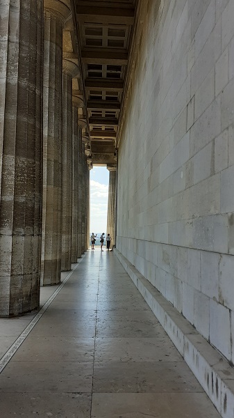 Für den Besucher präsentiert sich die Walhalla als großartiger Bau auf der Höhe oberhalb der Donau. So müssen die antiken griechischen Tempel auf die Menschen der damaligen Zeit gewirkt haben. Auch, wenn ich den gemütlicheren Weg an St. Salvator vorbei über die Walhallastrasse und durch den Wald genommen habe, würde ich Lesern, die noch nie dort gewesen sind, den Aufstieg über die Treppen von der Donauseite empfehlen. Von hier wirkt der majestätische Bau noch mächtiger und erhabener.