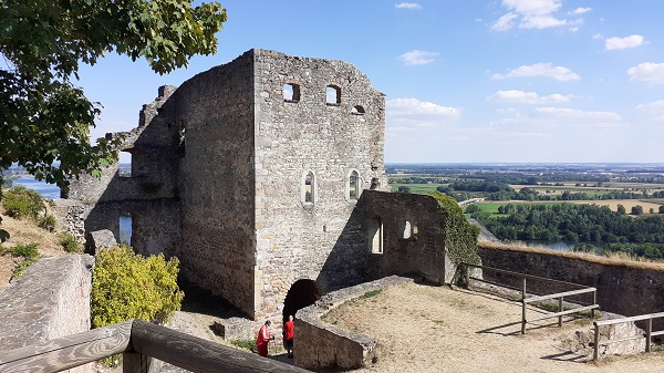 Noch ein Bauwerk überragt den Markt an der Donau, ja selbst die Wallfahrtskirche St. Salvator und die Walhalla: die Burgruine Donaustauf. An meinem Rückweg von der Walhalla lasse ich mir diese Gelegenheit auf einen Burgenbesuch doch nicht entgehen. Und so geht es, nachdem ich die Talsohle erreicht habe, wieder hinauf an den historischen Ort, an dem schon die Kelten etwa 500 v. Chr. eine Befestigung errichtet haben.