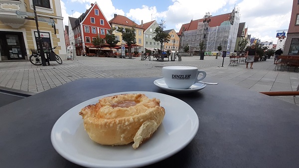 Fündig werde ich in der Bäckerei-Konditorei Hermann Ried mit Blick auf das Rathaus und den Marienplatz. Hier dreht sich seit über 90 Jahren alles rund um das Thema Backen. Im Jahre 1928 gründete Balthasar Anwander im Herzen Mindelheims eine kleine Bäckerei. Seither haben sich vier Generationen um das Wachsen und Gedeihen der Bäckerei Ried gekümmert. Das Ergebnis kann sich sehen lassen: ein leckeres Plundergebäck und ein Cappuccino mit Bohnen vom Dinzler. Doch lange kann ich nicht verweilen. Ich habe doch heute noch was vor…