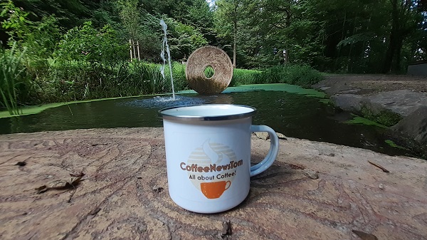 Entlang des Weges findet sich dieser Tümpel mit Springbrunnen und einer gelochten und gravierten Münze. Wo sollten sich Feen und Elfen des Nachts einfinden, wenn nicht hier? Ich nutze das lauschige Plätzchen zu einer Rast mit Kaffeepause. Hier genieße ich die Ruhe und die Kraft der Stille. „So geht Schritt für Schritt ein Raum auf, der vom geschäftigen Außen den Blick ins stille Innere wandern lässt. Auf diese Weise wirst Du wieder aufmerksamer für die Kostbarkeiten der Natur. Nimm Dir Zeit für die ruhigen Plätze und schöpfe im Grünen neue Kraft.“ Das passt für diesen Ort.