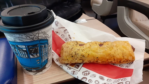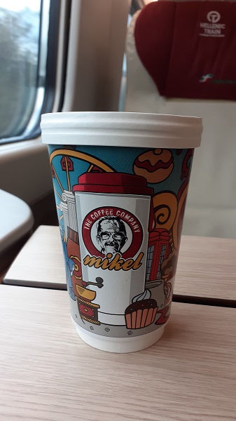 Später gelang es dem Team des Kaffeeanbieters Mikel das Bistro doch noch in Gang zu setzen. Dadurch war der Kaffeenachschub in Barista-Qualität gewährleistet. So konnte ich mich bequem zurücklehnen und die Landschaft Griechenlands an mir vorüberziehen lassen. Eine schöne Art zu reisen. Und ein schöner Kaffeemoment ist das auch.