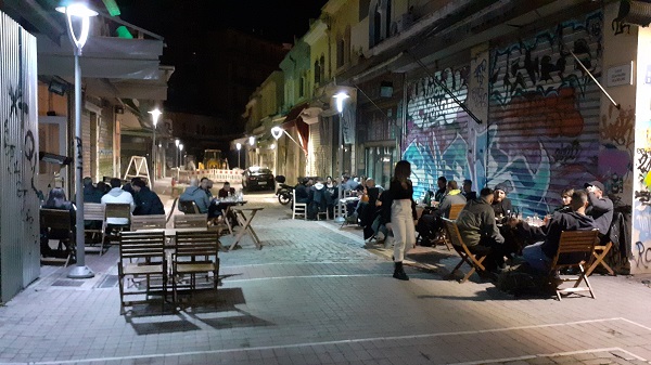 So fand ich mich wieder am Eingang zur Aristotélous, die jetzt in goldenes Licht getaucht war. Bis auf einzelne Nachtschwärmer fand ich auch diese Straße verwaist.