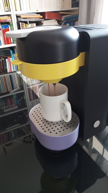 Es gibt nämlich drei Tasten. Jeweils eine für eine oder zwei Tassen. Dazu kommt noch eine dritte Taste für To-go-Becher. Das ist praktisch und zeitgemäß. Es lässt sich nämlich die Wassermenge für alle drei Tasten-Einstellungen individuell anpassen. Dazu braucht es etwas Geschick, da die Maschine gerne noch etwas nachläuft, aber schnell habe ich den Kniff raus. Also auf Tastendruck eine Tasse mit einem Pad (oder eine besonders starke Tasse mit zwei Pads), einen Becher mit zwei Pads und die individuell eingestellte Kaffeemenge für den eigen Kaffee-to-go-Becher – oder man kauft sich das farblich passende Modell bei Tchibo gleich mit dazu. Und nach der Nutzung? Ist die handliche Maschine genauso schnell gereinigt, wie sie bedient wird.