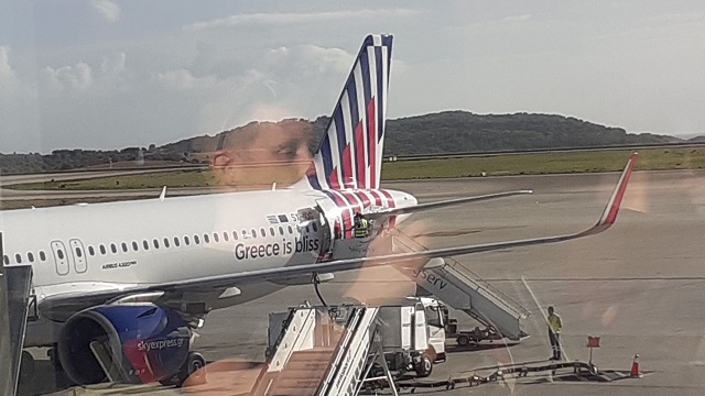 Die letzten Minuten auf griechischem Boden. Mein Blick schweift vom Fenster neben meinem Gate über das Flugfeld und trifft auf den Schriftzug der auf mich wartenden Maschine von Sky Express, einer griechischen Fluggesellschaft. „Greece is bliss“ lese ich dort. Griechenland ist Wonne, Glückseligkeit oder schlicht Glück sind mögliche Übersetzungen.