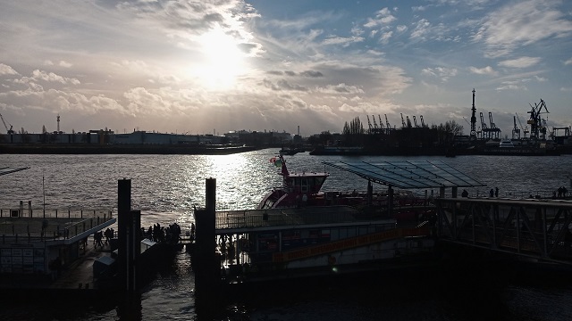 So lies ich die Touristen an mir vorbeiflanieren, lauschte dem Lärm der Maschinen, dem Geschrei der Ticketverkäufer und der Möwen. Musicalbesucher in Hektik, da sie ihre Fähre nicht verpassen wollen, Touristen mit jüngst erworbenen Souvenirs beladen und Hamburger, die einfach mal wieder hier vorbeischauen. Und ich mittendrin in der Sonne und mit Cappuccino. Ja, hat schon was, dieses Hamburg!