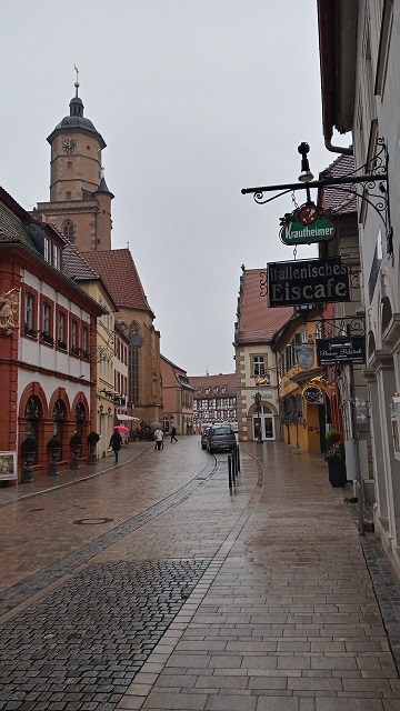 Verwaltungsmittelpunkt der Stadt wurde bald der Marktplatz mit dem Rathaus, kirchlich lag das Zentrum etwas weiter südwestlich, wo Pfarrkirche und das eigentliche Urzentrum der Stadt zu finden waren. Die Stadt wird bis heute geprägt von den Bürgerhäusern unterschiedlicher Epochen, deren Reichtum überwiegend auf den Weinbau zurückzuführen ist. Ich ließ das Gesamtbild der Altstadt auf mich wirken. Jetzt brauche ich eine Postkarte, einen Briefkasten und am besten noch einen Kaffee.