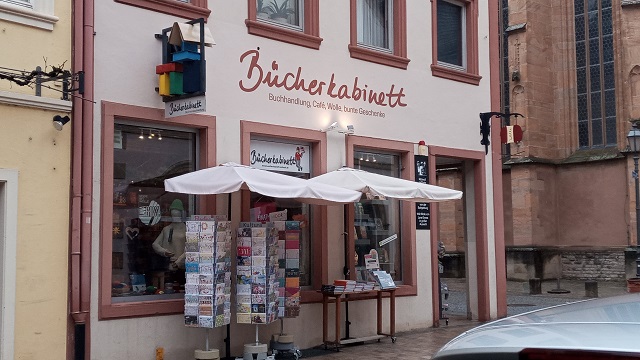 Die Buchhändlerin war sehr freundlich und so hatten wir einen kleinen Schwatz. Doch leider musste ich weiter. Ein Briefkasten lag so gut wie auf dem Weg zur Metzgerei René Wild und mit Leberkässemmel und einigen leckeren Wurstwaren für daheim im Gepäck ging es wieder weiter. Volkach ist wirklich mal einen längeren Besuch wert und das Bücherkabinett Volkach wäre für mich dann für eine Tasse Kaffee die erste Wahl.