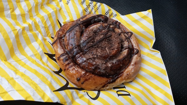 Das Besondere: alle Backwaren sind aus Dinkel. Diese Qualität zahlt sich aus. Neben dem Stammhaus in Haar gibt es Filialen in Vaterstetten und Ottobrunn. 2005 erfüllte sich Stefan Dümig einen Traum und baute sich einen Holzbackofen, um wie sein Großvater wieder original Holzofenbrot backen zu können. Diese Qualität zahlt sich aus: 2013 zählt das Magazin Feinschmecker die Bäckerei Dümig zu den besten Bäckereien Deutschlands, im Jahr darauf folgt eine Auszeichnung als bester Bäcker Bayerns einer ZDF-Jury um Meisterkoch Johann Lafer. Ich selbst bin bekennender Fan und nutze jede Gelegenheit beim Dinkelking einzukaufen. Diesmal war es – neben meinem Frühstückskaffee – eine leckere Dinkel-Schokoschnecke. Das perfekte Frühstück. Ein Mitbringsel habe ich auch noch mitgenommen. Doch davon morgen mehr…
