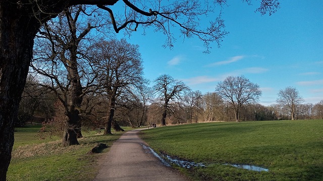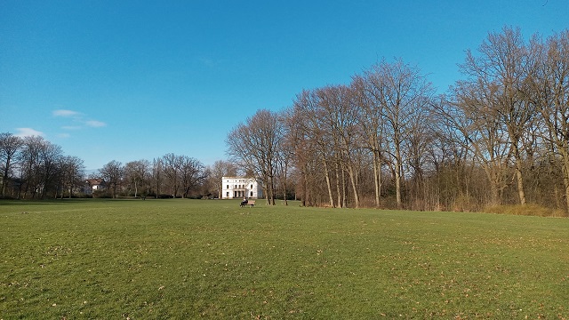 Ja, die Weite des Blicks tut einem gut. Auch daß der Park hügelig angelegt ist, ist mal ne Abwechslung im relativ flachen Norden. Es stehen wenigstens exotische alte Bäume in der Nähe des geschlossenen Gewächshauses. Da ist auch noch ne coole Bude, wo man Kaffee und Kuchen kriegen kann mit netten Sitzmöglichkeiten draußen…