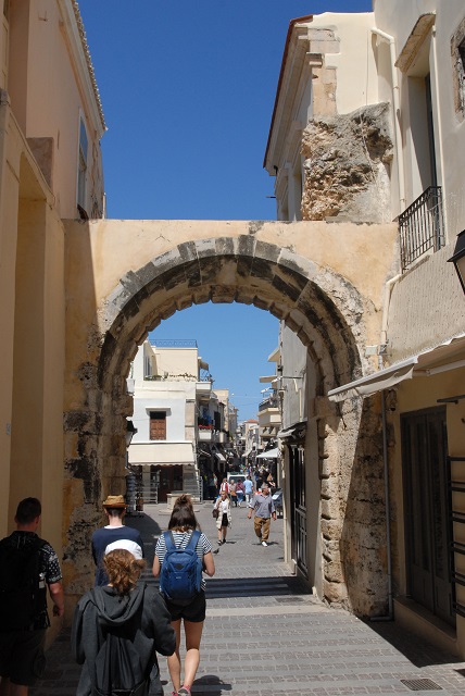 Unseren kleinen Rundgang beschließen wir an der Megali Porta. Der unauffällige Gewölbebogen zwischen zwei nahe beieinander stehenden Häusern ist das einzige erhaltene Stadttor Rethymnos. Hier, am Eingang zur Altstadt, beginnt die Einkaufsstraße Ethnikis Antistaseos, die uns geradewegs zurück zur Neratzes Moschee und vorbei am Rimondi-Brunnen zurück zu unserem Auto führen wird. Hier kehren wir aber noch in einer traditionellen Bäckerei ein, doch die ist einen eigenen Beitrag wert!