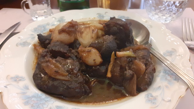 Für heute haben wir genug erlebt und so beschließen wir unseren Tag im Restaurant Athali (nachdem die ursprünglich eingeplante Taverne Peskevi zu voll war und wir nicht reserviert hatten), ein hübsches, helles Restaurant mit Grill und einem lichten Wintergarten, wo wir wieder ganz ausgezeichnet essen: Athali-Salat, Gardoumia – Lammbauch mit Innereien in Ei-Zitronen-Sauce – Ziegen-Eintopf mit Marouva-Wein, und Lamm-Souvlaki.