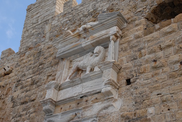 Als Signatur der Republik Venedig hängt über den beiden Eingängen der Festung jeweils ein Relief des geflügelten Markuslöwen. Doch das Tor war an diesem Tag geschlossen und so entfiel ein Besuch des Gemäuers. Von hier aus hat man aber den schönsten Blick auf den Hafen. Da fallen einem gleich die hohen venezianischen Bögen der Arsenale ins Auge.