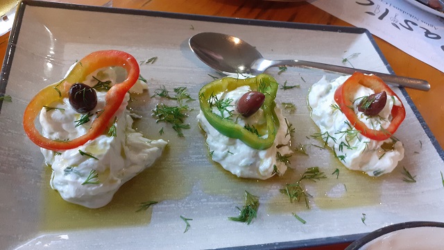 … dazu Tzatziki. Hier nahm man aufmerksamer Weise auf die Zahl der Gäste am Tisch Rücksicht. Alles in allem ein rundum gelungener Abend bei einem freundlichen Wirt und sichtlich bemühten Kellnern. Den ersten Platz hätten sie also verdient.