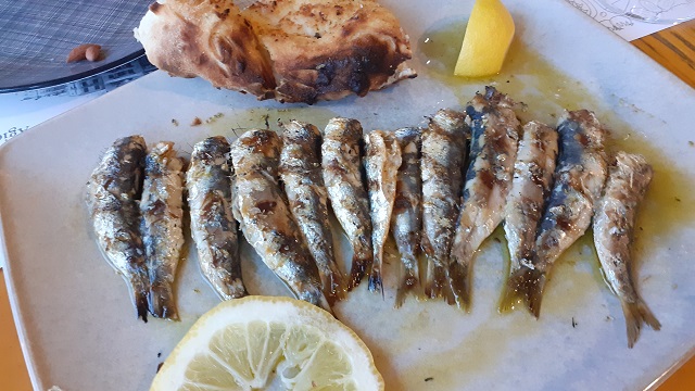 Mittags wäre uns das zu mächtig gewesen, heute Abend waren sie fällig: gegrillte Sardinen. Bestimmt genauso frisch, wie wir sie in Plaka bekommen hätten.