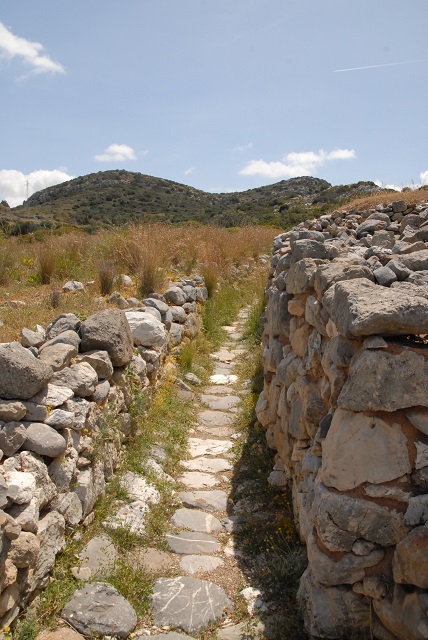 Wir schlendern auf den gepflasterten Straßen der archäologischen Stätte und versuchen uns vorzustellen, wie das Leben in der kleinen minoische Stadt gewesen sein muss. Die noch vorhandenen Mauern sind gerade einmal schulterhoch. Trotzdem wird es eng in den schmalen, gerade einmal einen Meter breiten und mit Steinen bepflasterten Gassen der Stadt. Vermutlich lagen im Erdgeschoss der Häuser Läden und Werkstätten und im oberen Teil die Wohnungen. Viele der Häuser waren zwei- oder mehrgeschossig, was durch Reste von Außentreppen bestätigt wird. Archäologen fanden verschiedene Werkzeuge, wie Meißel, Haken, Hämmer und Töpfe, die uns helfen, sich den Alltag der Minoer vorzustellen.