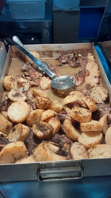 Doch es gibt ein Ausnahme: die Taverne Zorbas. Hier finden Sie bis heute die traditionelle kretische Küche. Wählen Sie nicht nach der Karte, gehen sie über den Haupteingang in die Küche. Hier können Sie alle die täglich frisch gekochten Gerichte sehen, zubereitet von Mutter, wie es sein sollte. Für einen sehr angemessenen Preis bekommen Sie hier gutes Essen in freundlicher Atmosphäre.“