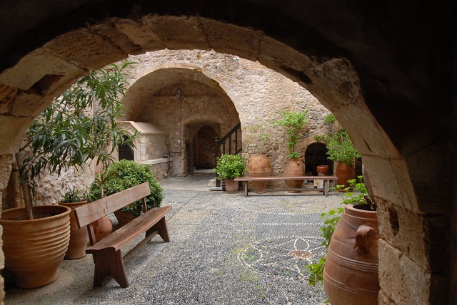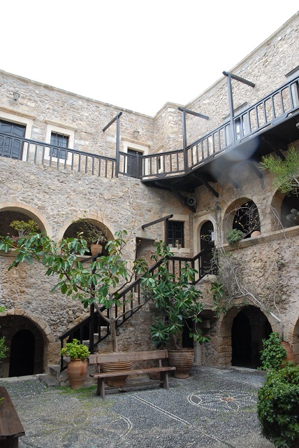 Etwas abseits der Straße Sitia-Paleokastro in einem ansonsten menschenleeren Teil des Ostens, liegt das Kloster Toplou. Wie eine mittelalterliche Burg steht dieses Kloster inmitten einer Landschaft, die eher an die Western von Sergio Leone erinnert, als an Griechenland. Wehrhaft waren die Klöster auf Kreta schon immer. Über Jahrhunderte hinweg galten sie als Keimzellen des Widerstandes gegen die zahlreichen Besatzer, egal ob Byzantiner, Genueser, Venezianer, Türken oder Deutsche.
