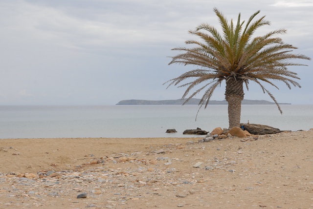 Die Dattelpalmen waren auch beteiligt, als Martin seine Wortschöpfung „Ostkretische Trilogie“ erdachte. In seinen Reiseblog „Globetrottel“ heißt es: „Auf dem Weg zum nächsten Programmpunkt, ‚Vai Beach‘ und die hellenistische Ausgrabung von Itanos, gelang uns ein Potrait dessen, was ich ‚Ostkretische Trilogie‘ getauft habe: Wein, kretische Dattelpalmen und Schafe.“ Alles zusammen zu sehen in diesem Bild.