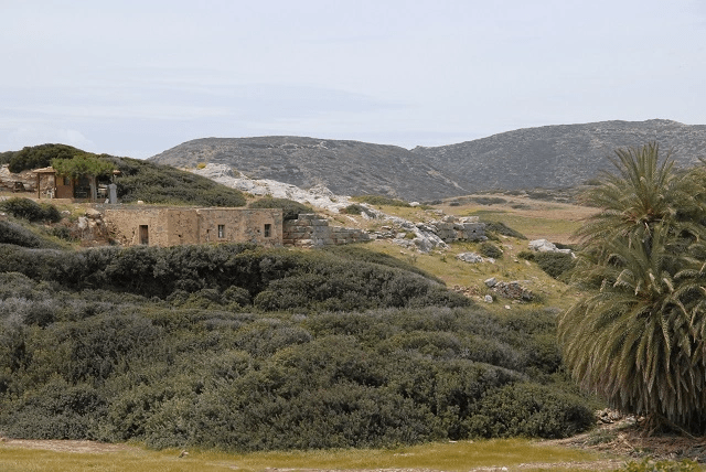 Im Rahmen von archäologischen Ausgrabungen wurden unter anderem die Überreste einer byzantinischen Basilika freigelegt, während oberhalb noch die Ruinen eines Hauses aus dem Mittelalter zu sehen sind. Etwas landeinwärts erstrecken sich die Grundmauern der einstigen Akropolis der Stadt zur Zeit der dorischen Besiedelung befinden. Hier sieht man, wie nah oft Gegenwart und Vergangenheit beieinander liegen: direkt an Grundmauern der Akropolis schließt sich heute ein Bauernhaus an.