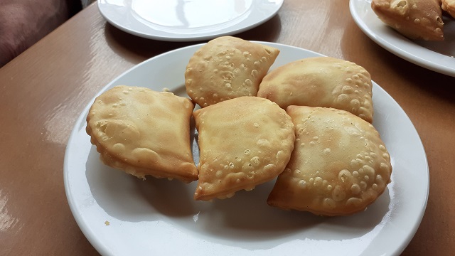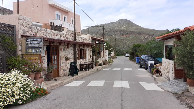 Und weiter geht es. Gut, dass Kostas noch einen Plan B in Petto hatte. In Adravasti, einem kleinen Bergdorf entlang der Straße, wurden wir in der gleichnamigen Taverne fündig. Hier fasste ich erstmal einen Frappé. Und wir beschlossen uns zu stärken. Nicht allzu üppig, denn das Ziel der heutigen Etappe – Zakros – war gar nicht mehr so weit. So beließen wir es bei frischen und heißen Spanakotiropita, beziehungsweise Tiropitakia, einmal mit Spinat, einmal mit Feta gefüllt.