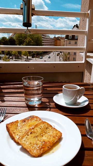 Kritiker könnten sagen, es sei für ein Frühstück zu mächtig. Dabei hat ein Grillkäse „nur“ 323 kcal. Also gut, es ist eigentlich zu viel. Dazu kommen noch einmal etwa 60 kcal für zwei Teelöffel Honig. Aber ist schmeckt halt nun einmal so gut und ist einfach zuzubereiten. Käse in die Pfanne, Honig drüber, servieren. Dazu noch ein griechischer Kaffee und fertig ist das Frühstück. Da ich im Schnitt nur ein bis zwei mal pro Woche zum Frühstücken komme, kann ich mir das erlauben.