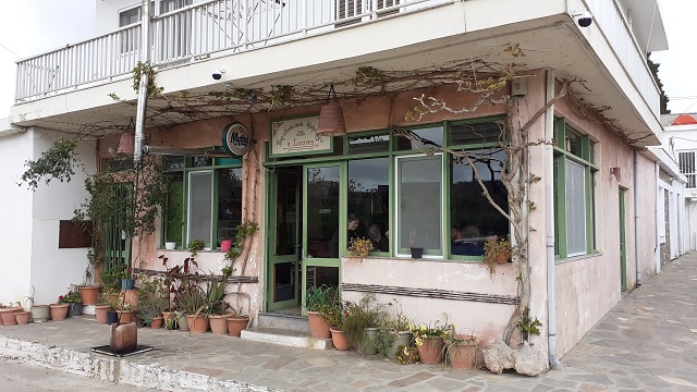Für uns war das nach dem verlassenen Ort Skalia, von dem nur noch einige Ruinen stehen, das erste bewohnte Dorf, durch das wir bei unserer Durchquerung des östlichen Lassithi-Gebirges kamen – und eine willkommene Gelegenheit Kaffee zu trinken. Direkt in einer Kurve fanden wir das Παραδοσιακό καφενείο, das Paradosiakó kafeneío, was nichts anderes bedeutet als das traditionelle Kafenio von Sitanos. Da die Straße dort sehr eng ist, mussten wir uns mühen einen geeigneten Parkplatz zu finden, was uns schließlich auch gelingt.