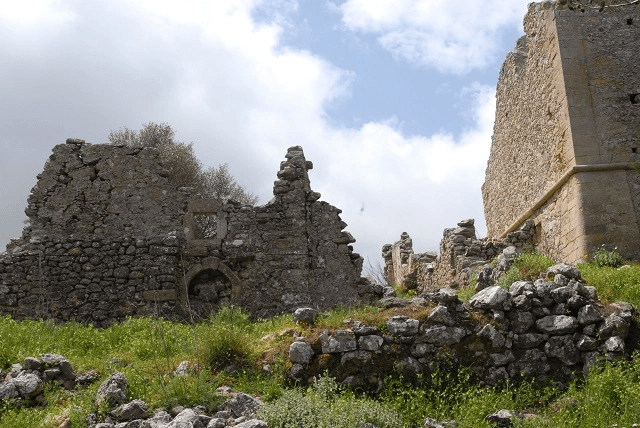 Die Festung besteht hauptsächlich aus einem hohen Turm, der frühere Turm von Genna, der in relativ gutem Zustand ist und restauriert werden könnte. Neben dem Turm befindet sich die kleine zerstörte Kirche von Tzinalis. Die etwas abseits gelegene Kirche Agios Georgios besteht aus zwei aneinandergebauten Teilen und besitzt in ihrem Inneren ein Fresko der Jungfrau Maria. Auch wenn das Dorf schon seit über 100 Jahren verlassen ist, sind einige der Gebäude noch recht gut erhalten.