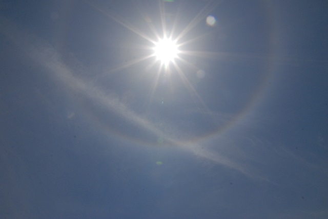 Die Götter sind uns wohl gewogen. So interpretierten wir jedenfalls den Halo rund um die Sonne – eine Art Regenbogen bei strahlendblauem Himmel – den wir bemerkten, als wir am Parkplatz vor dem Palast ausstiegen. Wir waren sehr neugierig, gilt doch Phaistos, auch Phaestos und neugriechisch Festos, als als Gegenentwurf zu Arthur Evans Rekonstruktionen in Knossos. Hier wurde nicht rekonstruiert. Sich den Palast vorzustellen bleibt alleine der Phantasie des Besuchers überlassen. Eines muss man den Erbauern aber lassen: sie hatten ein Händchen für einen Bauplatz mit einer tollen Aussicht!