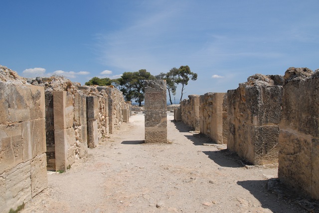 Rund 60 Kilometer südlich von Knossos erhebt sich hier auf einem Bergrücken in etwa einhundert Metern Höhe der zweitgrößte Palast der Insel. Der Ort ist strategisch gut gewählt: der kleine Hügelzug schließt die Messara-Ebene ab, wie der Bug das Schiff. Heute kann man sich kaum vorstellen, die der Palast im Laufe der Zeit komplett verschüttet werden konnte. Bereits im Jahr 1900 wurde hier vom italienischen Archäologen Federico Halbherr der Palast verortet.