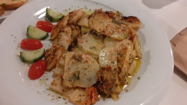 Im Hauptgang teilten wir uns ein sehr leckeres traditionelles Boureki, ein Gemüseauflauf mit Kartoffeln und Mizithra-Käse…