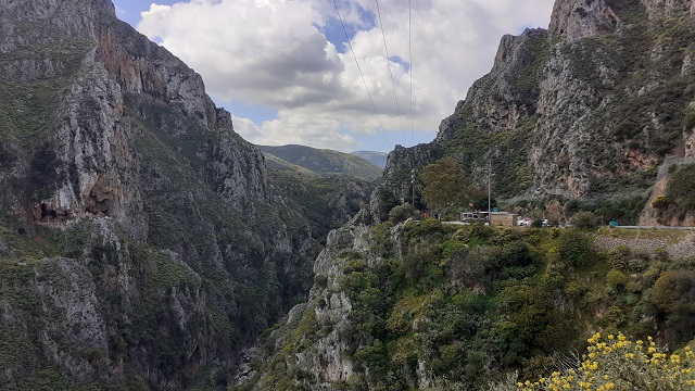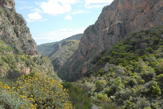 Zu Unrecht: hier gibt es viele einfache aber gute Tavernen und einige schöne Strände, ein venezianisches Kastell, ein bedeutendes und noch von Mönchen bewohntes Kloster und einer der geheimnisvollsten Orte Kretas. Und es gibt die beeindruckende Topolia-Schlucht mit ihren bizarr gezackten Felswänden, nicht weniger spektakulär als andere, wenn auch deutlich kürzer. An der Westseite dieser Schlucht windet sich die immer enger werdende Straße durch einen dunklen Tunnel. Ist er einmal durchfahren, weitet sich das Tal mit jedem Kilometer und bietet wieder Platz für Wein- und Olivenanpflanzungen, rosa blühenden Oleander und schattige Platanen.
