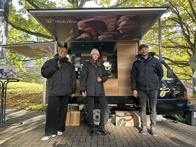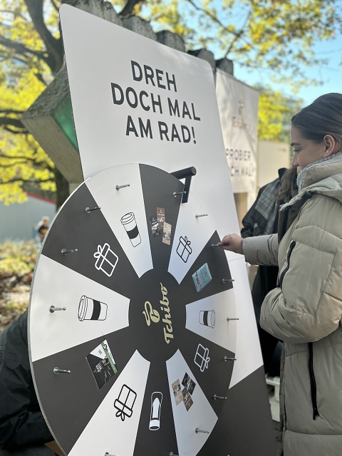 Den Studierenden steht ein stressiger Uni-Tag bevor: Keine Zeit für eine entspannte Kaffeepause? Wir haben die Lösung: Tchibo bringt den Kaffee auf den Campus. In gemütlicher Atmosphäre schenken wir die Lieblingskaffees aus – mit Zucker, Milch(-alternative) oder pur – hier kommen alle auf ihren Geschmack! Wählen können die StudentInnen zwischen einem vollmundigen Caffé Crema und einem kräftigen Espresso. Natürlich gratis.