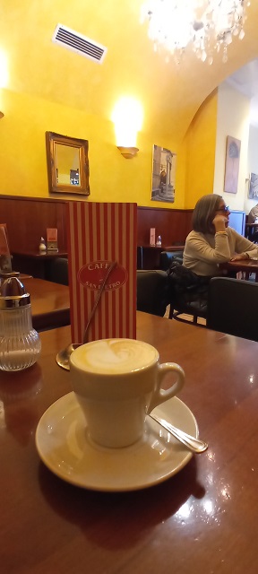Alleine der Preis für einen Cappuccino – 4,70 € – lässt einen kurz schlucken. Altstadt in touristischer Lage kostet. Ein Münchner Preis halt. Aber es geht auch teurer. Der Nachbar, das Caffé Piemonte, verlangt für den Cappuccino 20 Cent mehr. Aber da schauen wir morgen vorbei. Für heute genießen wir die Ruhe im San Pietro.