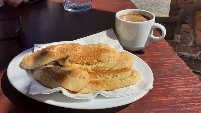 So machen wir uns auf die letzte Etappe unserer Reise. In jedem Moment schwingt schon ein wenig Wehmut mit. Das letzte Kafenio, die letzte Taverne, der letzte Blick vom Berg auf das Meer. Ach ja, wir brauchen auch noch einen Supermarkt um uns mit allerlei Mitbringseln einzudecken. Bei gerade einmal 9 kg Startgewicht ab München ist da jede Menge Luft nach oben. Also heißt es „yassu Café Panorama“! Und bis bald!