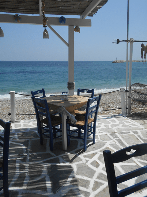 Mit Blick aufs Meer, die salzige Seeluft in der Nase, die warme Sonne auf der Haut – was für ein Unterschied zum kalten und verregneten Hamburg. Mit vollem Magen lässt es sich auch besser Pläne schmieden. Deshalb schauen wir auf den von Kostas vorbereiteten Reiseplan. Da stehen heute noch das Heraion und ein Besuch in Pythagorio auf dem Programm. Aber in aller Ruhe. Schließlich geht unser gemeinsamer Urlaub gerade erst los.