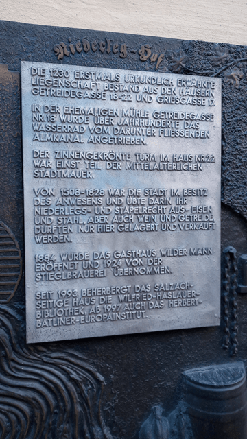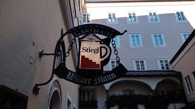 Gasthaus „Zum Wilden Mann“, Getreidegasse 20, Salzburg, Österreich; Öffnungszeiten: Dienstag – Samstag 11:30 – 20:00 Uhr.