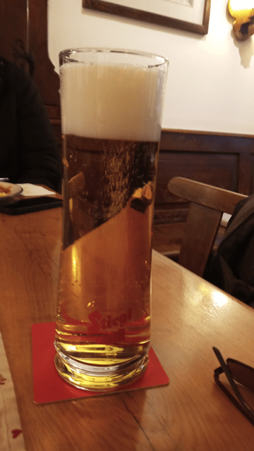 Ich lasse mir sogleich ein frisch gezapftes Stiegl Gold bringen. Was Ihr hier übrigens auf meinem Teller seht ist die kleine Portion Gulasch! Ich glaube die reicht mir heute. Tatsächlich verirren sich nur wenige Touristen hierher. Es liegt halt doch abseits der großen Ströme. Aber dafür sind viele Einheimische da, Bänker neben Handwerkern, Touristen neben Eingeborenen – man muss froh sein wenn man zur Mittagszeit überhaupt einen Platz bekommt! So, jetzt geht es aber weiter, denn ich habe heute noch etwas vor. Aber davon erzähle ich Euch morgen…