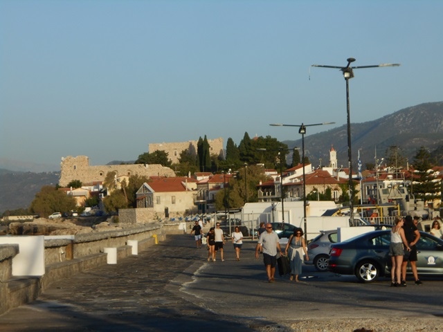 Noch liegt das Fährschiff ruhig am Ende des Auslegers und schaukelt sanft vor sich hin. Auf dem Pier bewegt sich ein stiller Strom auf die große geöffnete Ladeluke zu. Über eine Rampe scheint alles im Bauch der Fähre zu verschwinden. Entladene Taxis und andere Fahrzeuge wenden sich gegen den Strom und fahren zurück zur immer noch verschlafenen Promenade. Alles geht ruhig und diszipliniert. Schon vor 2.500 Jahren gingen Reisende über den selben Pier zu einem der über einhundert Samaina, die Fünfzigruderer und damals modernsten Schiffe der hellenistischen Welt, die die Insel damals berühmt, reich und mächtig machten. Von den Hafenanlagen gibt es noch zahlreiche Reste aus verschiedenen Epochen, die Fundamente jedoch sind in jedem Fall antik.