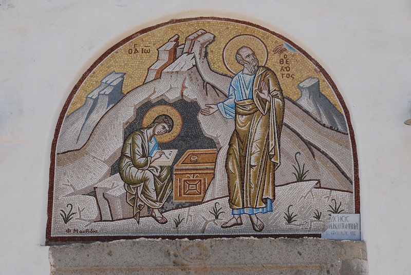 Diese Zeilen in den Offenbarungen des Johannes, auch bekannt als Apokalypse, haben der Insel Patmos zu nachhaltigem Ruhm verholfen. Der Evangelist Johannes wurde 96 wegen seiner Predigten vom damaligen Kaiser Domitian nach Patmos verbannt. Johannes, so die Überlieferung, verbringt die Zeit seiner Verbannung in der Grotte der Apokalypse. Nachdem der Kaiser 97 gestorben war kehrt Johannes nach Ephesus zurück, wo er bis ins hohe Alter lebte. Für die orthodoxe Kirche steht fest, dass Johannes, der die Vision der Apokalypse empfangen hat und diese seinem Schüler Prochoros, diktierte, mit dem Autor des Johannes Evangelium identisch ist.